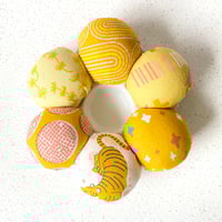 This handmade pretty pincushion is a sewing room essential. The porcelain base helps it to stay put and not roll around while you're trying to use it. The well on the side is also perfect for holding buttons or other little notions that you may need for a project. And I mean.....it's just so cute, don't you think? ^_~