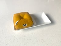 This handmade pretty pincushion is a sewing room essential. The porcelain base helps it to stay put and not roll around while you're trying to use it. The well on the side is also perfect for holding buttons or other little notions that you may need for a project. And I mean.....it's just so cute, don't you think? ^_~
