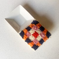 This handmade, punch needled pin pillow is a sewing room essential. The porcelain base helps it to stay put and not roll around while you're trying to use it. The well on the side is also perfect for holding buttons or other little notions that you may need for a project. And I mean.....it's just so cute, don't you think? ^_~